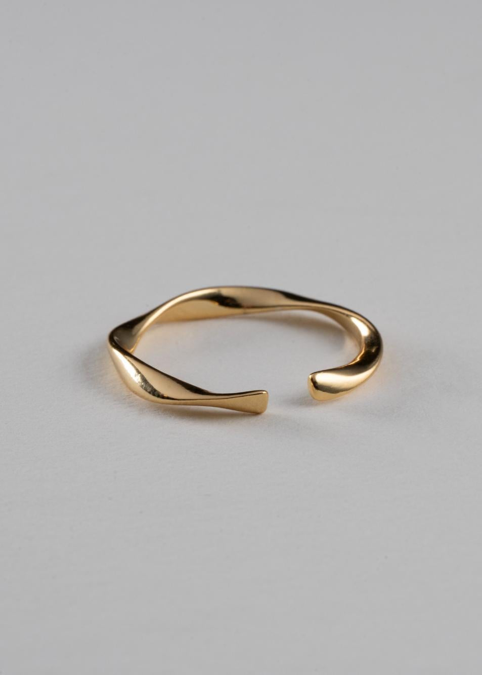 Este anillo abierto en plata 925 se inspira en el movimiento suave de una ola. Su forma curva y envolvente lo convierte en una pieza minimalista pero con mucha personalidad. Disponible en dos versiones —baño de oro de 18k o acabado en plata natural— es ideal para llevar solo o en combinación con otros anillos finos.