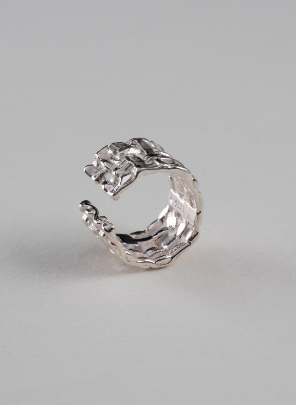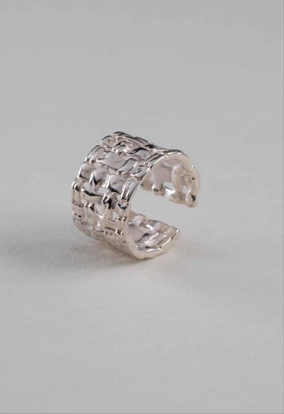 Cuff a presión para oreja con diseño entrelazado y acabado en oro. No requiere perforación, fácil de ajustar y cómodo de llevar.