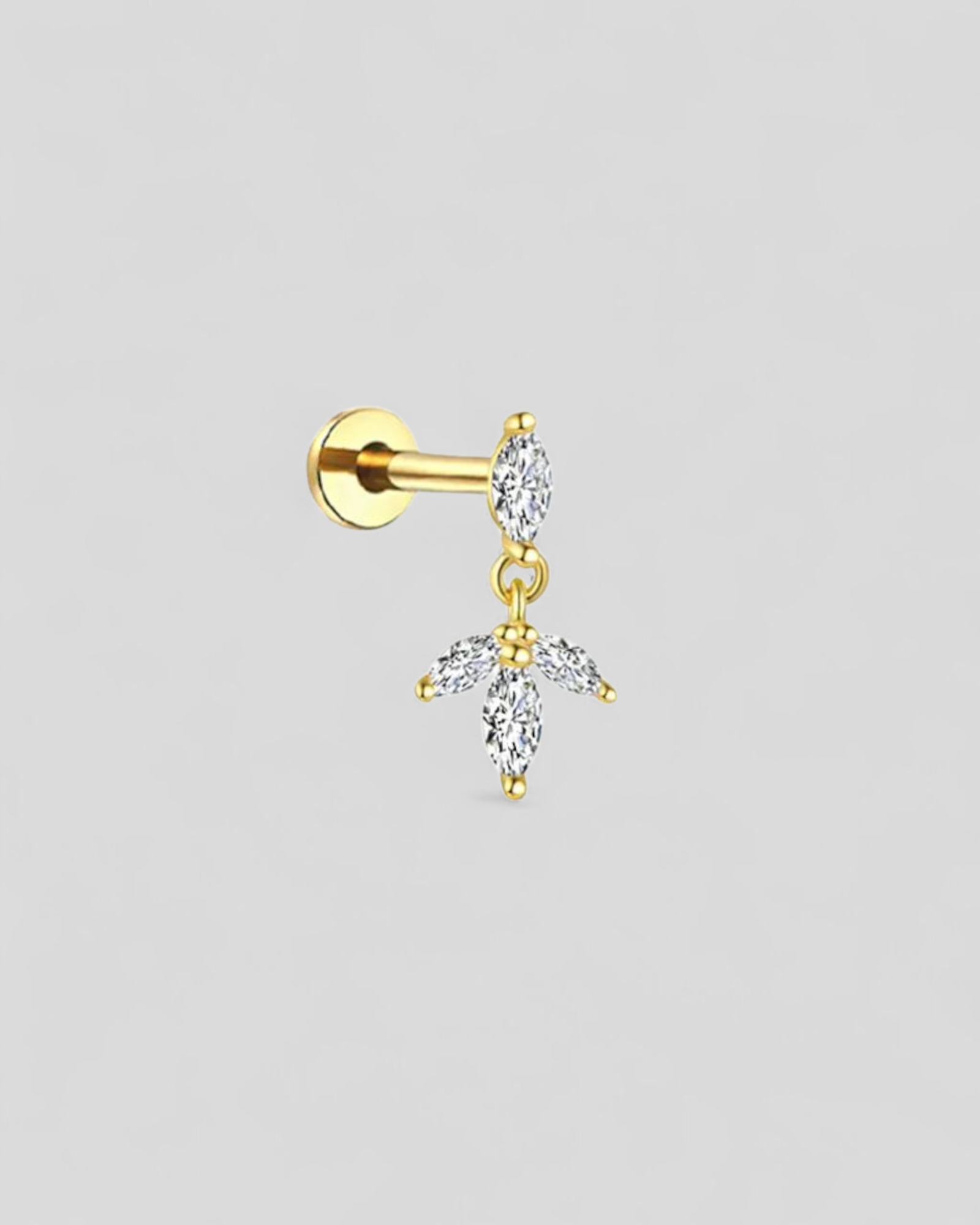 Elegante y femenino, este stud colgante con zirconias en corte marquise está diseñado para dar movimiento y brillo sutil a tu perforación. Ideal para quienes buscan un toque delicado sin perder personalidad. Fabricado en titanio grado implante F136 para máxima seguridad y confort.