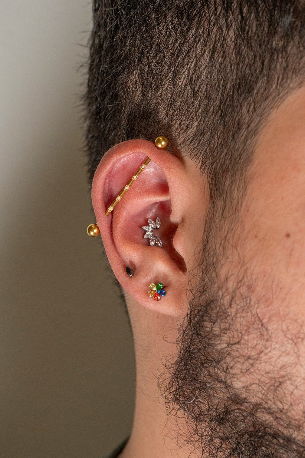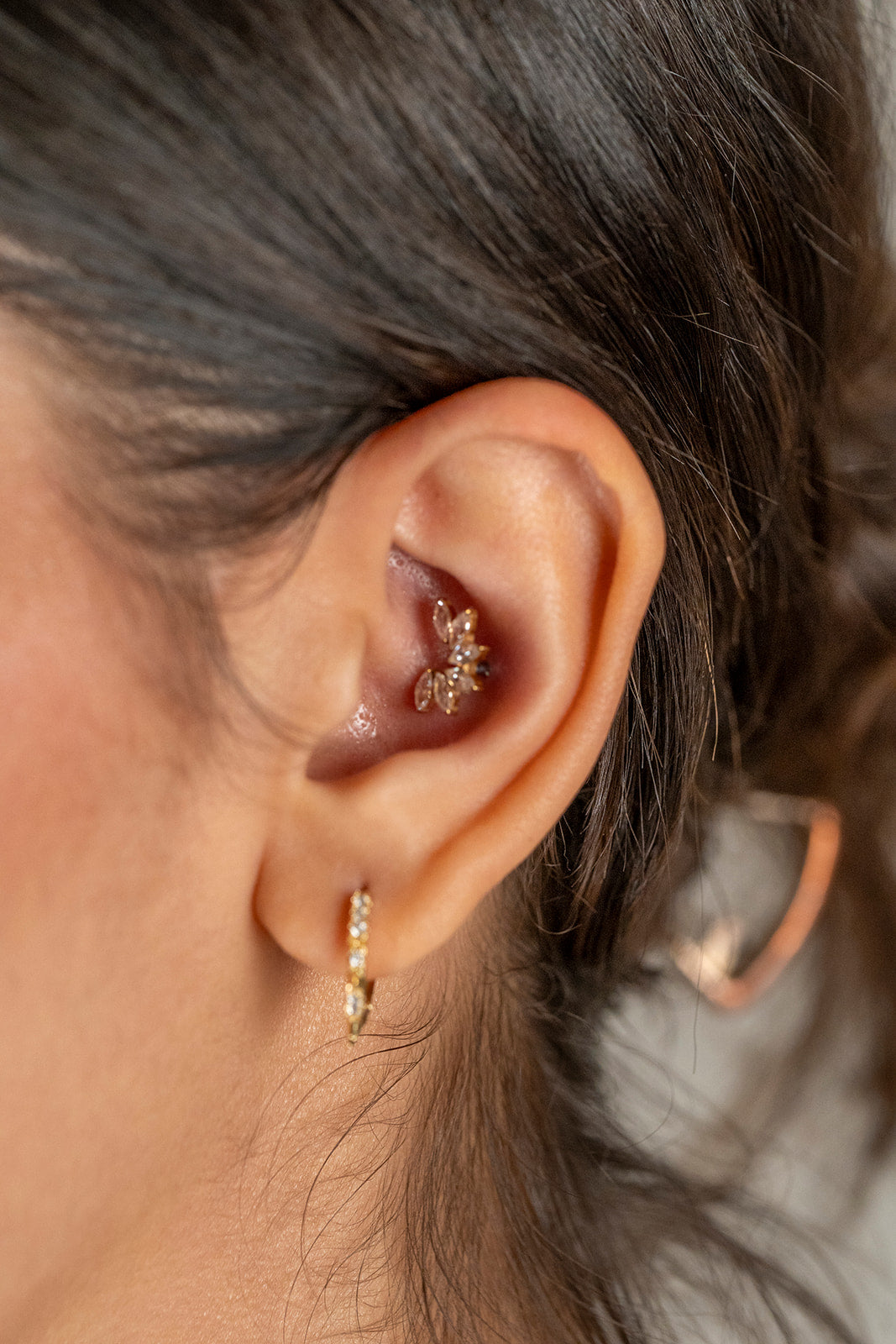Nuestras piezas están hechas de oro sólido de 14k o titanio grado implante, los mejores materiales para perforaciones, ideales para pieles sensibles.