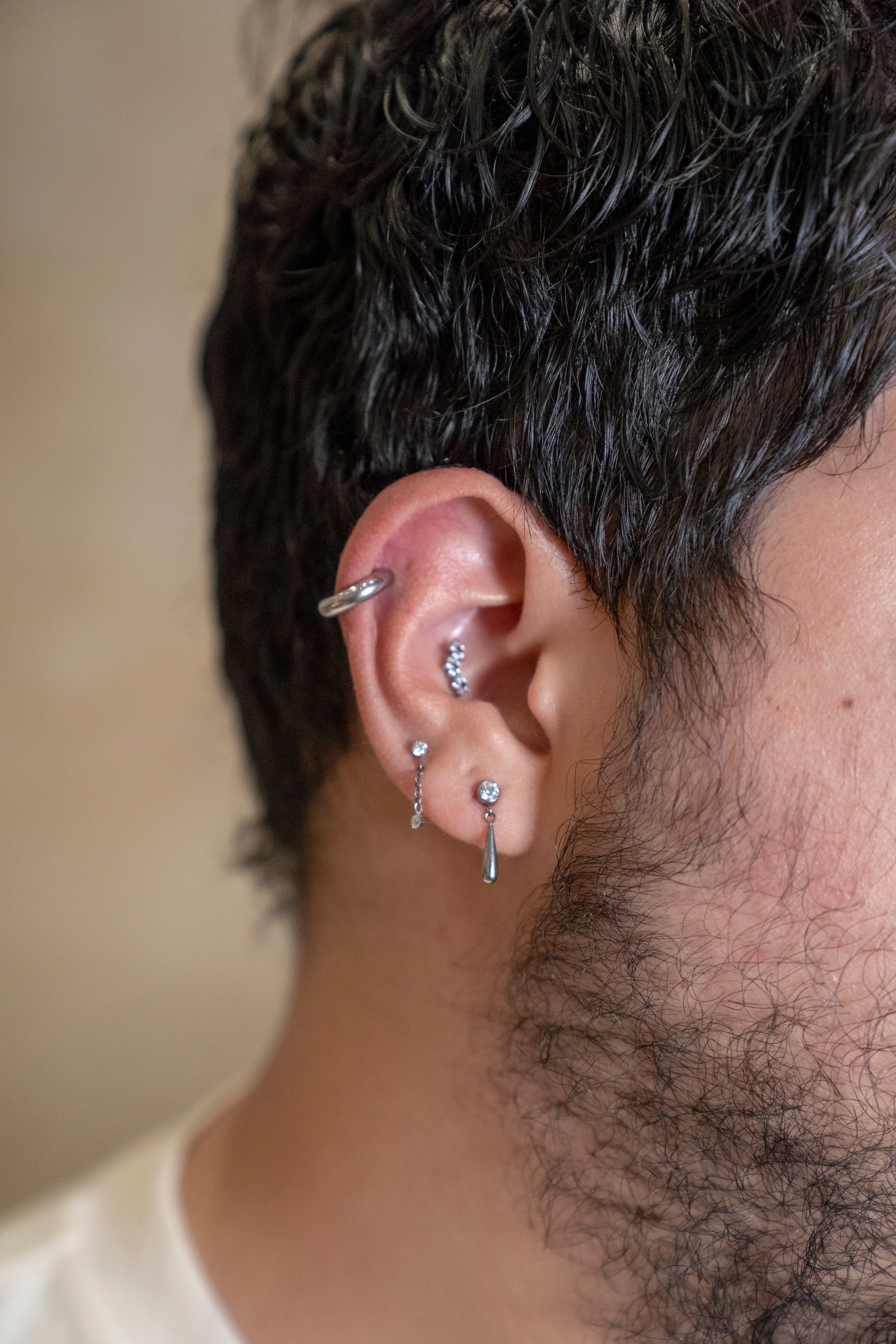 Nuestras piezas están hechas de oro sólido de 14k o titanio grado implante, los mejores materiales para perforaciones, ideales para pieles sensibles.